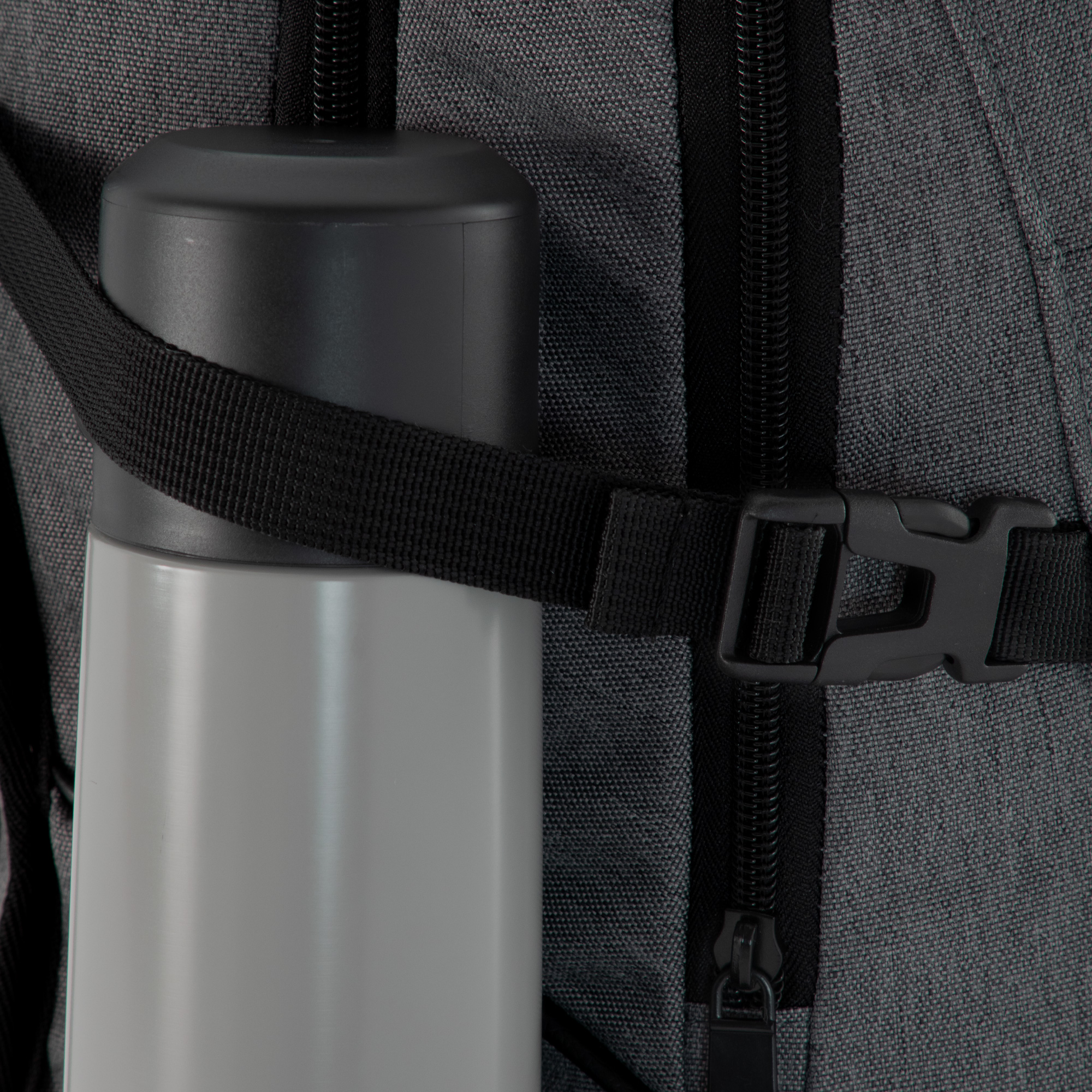 Mochila urbana portanotebook de hasta 16 pulgadas. Compartimento principal con cierre, interior con 2 bolsillos, bolsillo porta notebook acolchado y elástico de seguridad y bolsillo porta tablet de hasta 11 pulgadas. Compartimento frontal con cierre, exterior con cierre horizontal, interior con bolsillos organizadores. 2 bolsillos laterales de tela elastizada color negro. 2 correas de hebillas ajustables al volúmen que se traslade. Asa acolchada y reforzada. Espalda acolchada con red que permite ventilación. Tiradores de cierre metálicos.