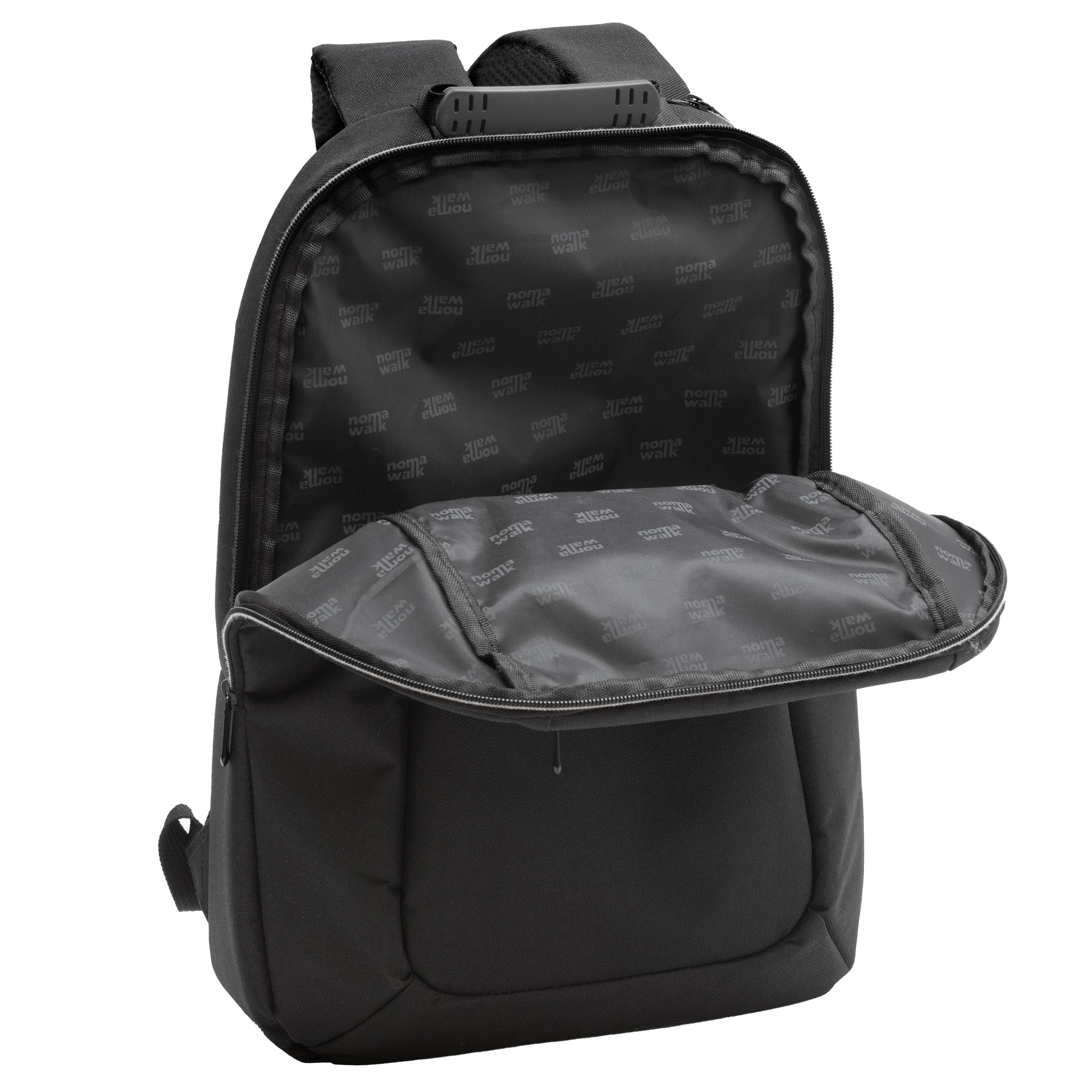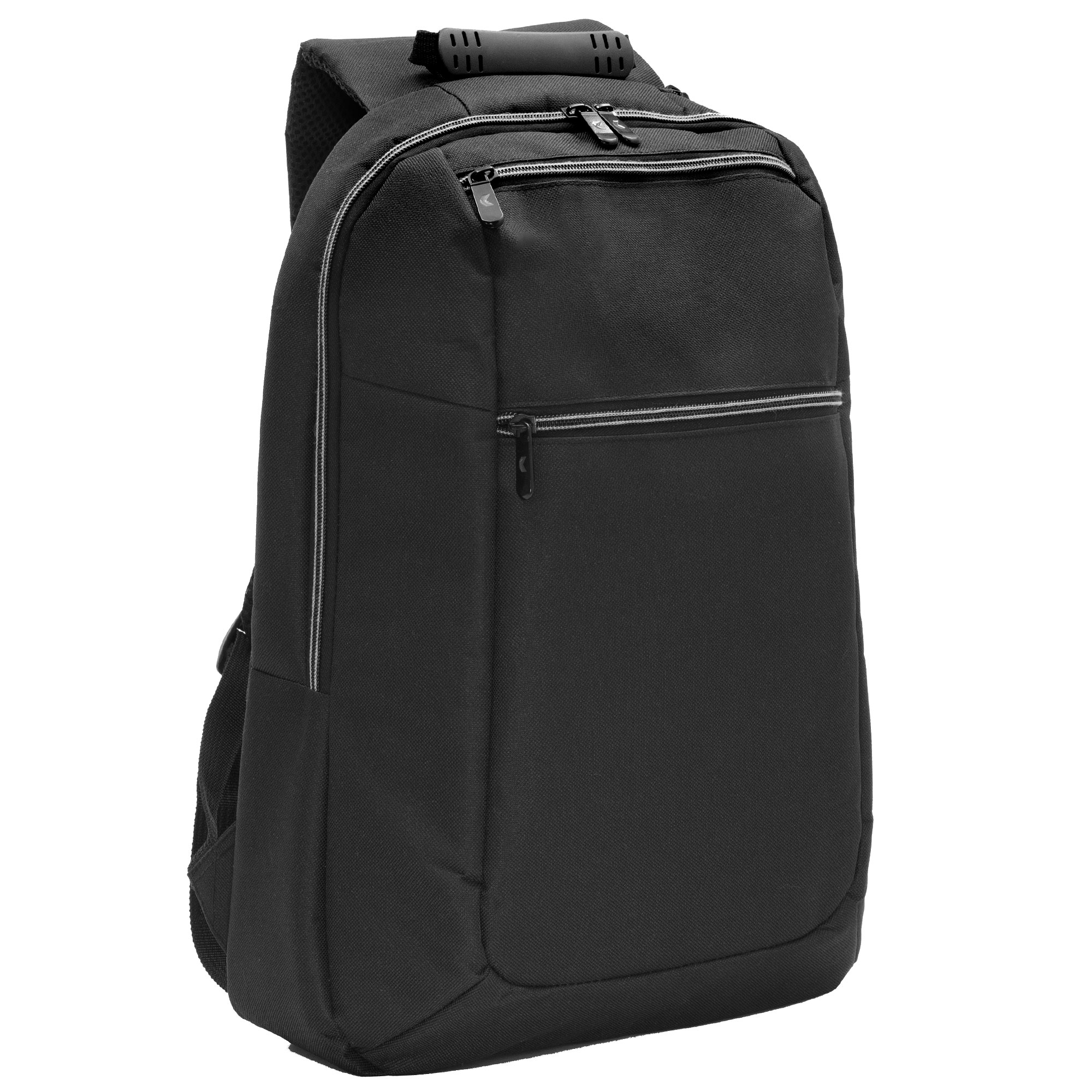 30 x 43 x 12 cm. Capacidad 14 litros. Poliéster 600D, interior poliéster 210D. Mochila portanotebook de 14 pulgadas, con 2 compartimentos principales y 2 bolsillos frontales horizontales. Con asa superior y correas acolchonadas y cierres metálicos, hebillas plásticas. Espalda acolchonada. Tira para sujetar el equipaje.